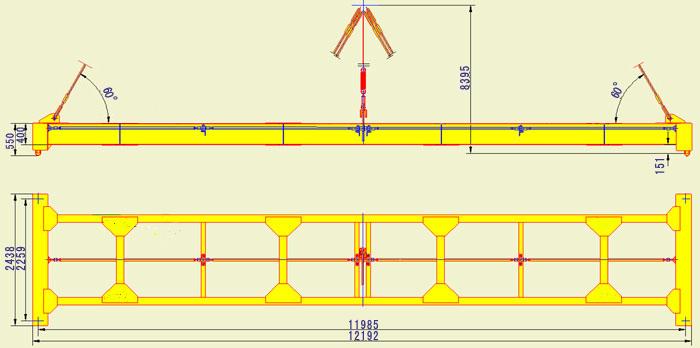 2. 在主梁下部加装四个吊耳,单个吊耳额定吊重10吨,可以调运非集装箱货物。